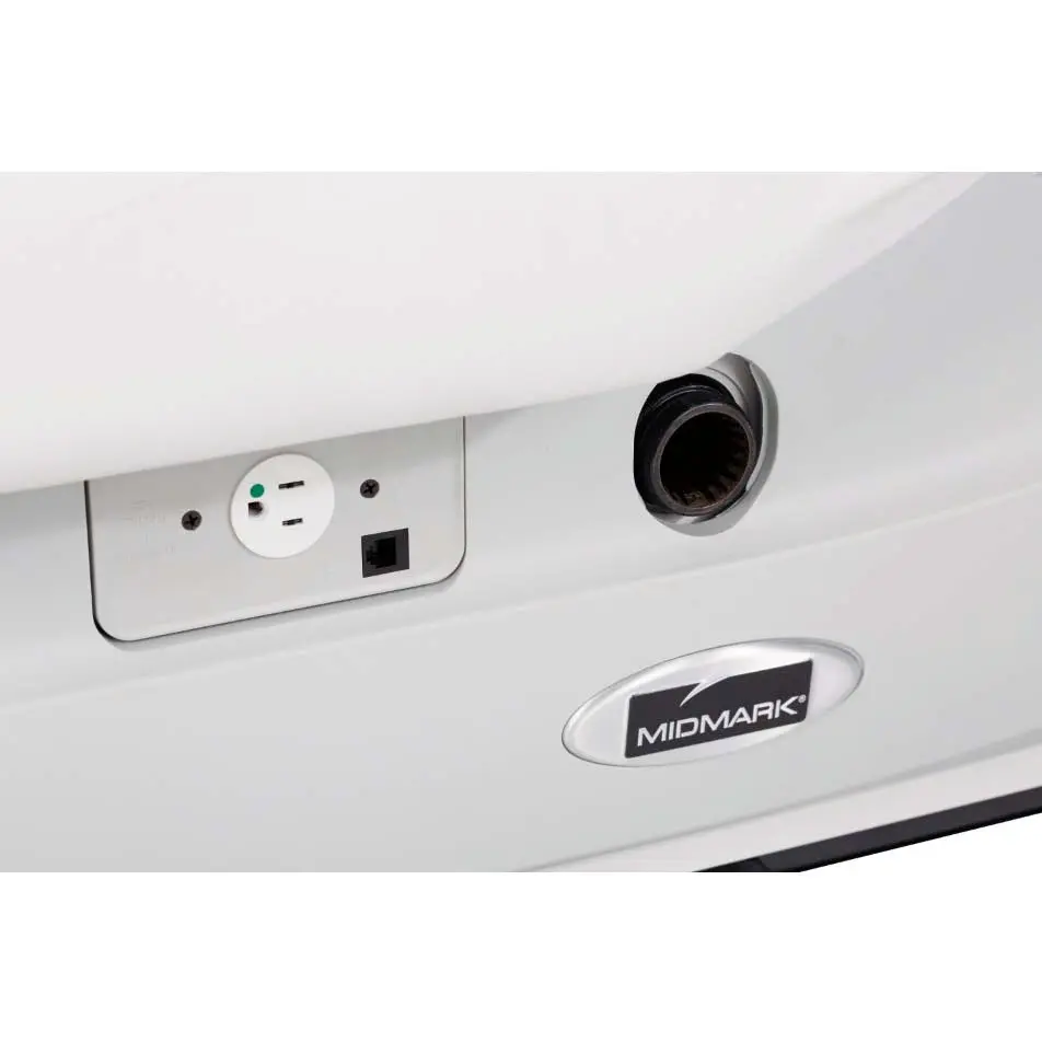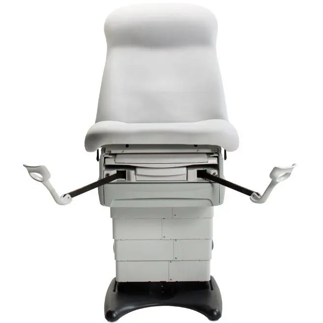 This Midmark 626 exam chair includes hand and foot controls, stirrups, accessory receivers, and a heated drawer. Clean Assist Roller System allows easy repositioning for sanitation. Tamper-resistant receptacles on both sides support safe power use for medical devices. Furthermore, the Premium Comfort System creates a chair-like experience with improved ergonomics and cushioning.