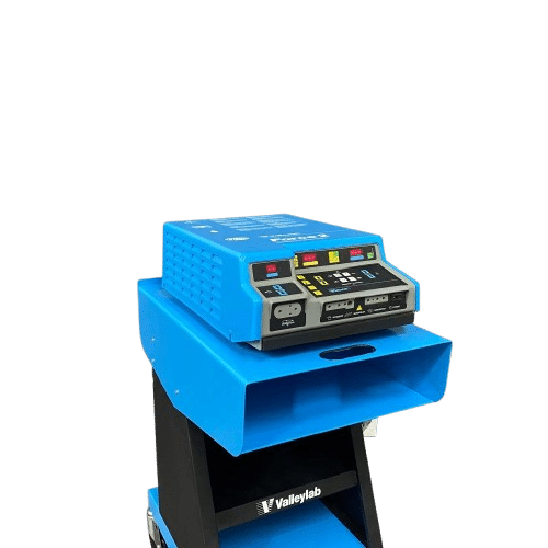 Valleylab Universal ESU Cart – Refurbished. The Valleylab Universal Mounting Cart creates a more organized and efficient operating room. It stores two electrosurgical generators and one smoke evacuator on a single, compact platform. This design improves workflow, and it also frees valuable O.R. space for essential surgical tasks. In addition, teams can move equipment quickly because the cart supports smooth mobility.