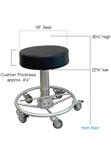 This P-6001 chair supports up to 300 lbs, making it suitable for a wide range of medical professionals. The 16-inch round fully padded seat ensures optimal comfort during extended use. The 21-inch diameter powder-coated base provides stability, while the high-grade 3-inch casters ensure smooth movement. Three locking casters allow secure positioning whenever needed.