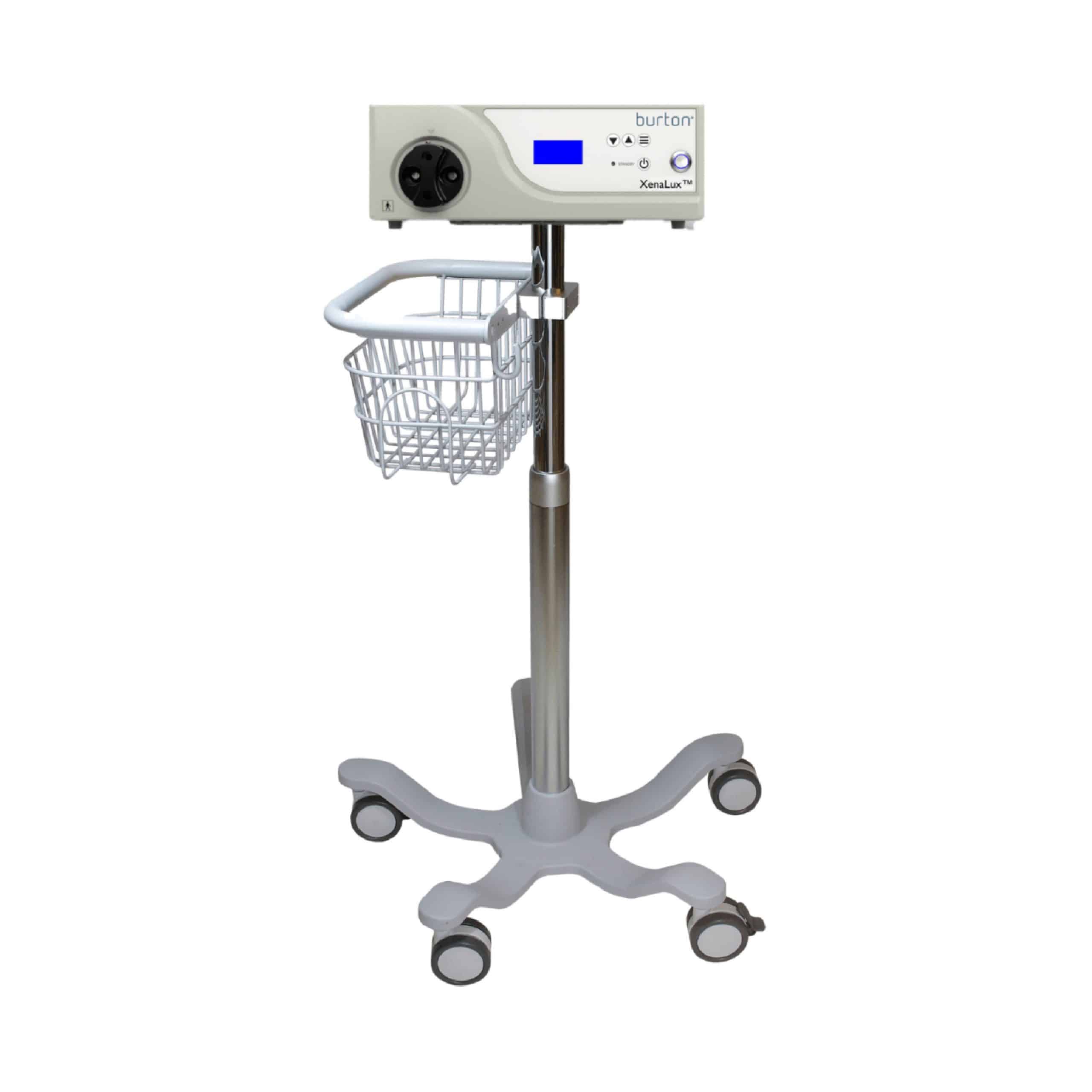 The Burton XenaLux 880300 Mobile Light Source Stand for the XenaLux Xenon Lamp Illuminator provides stable, vertical support for surgical lighting equipment. This accessory securely holds the illuminator while allowing convenient positioning in operating rooms and procedure suites. Moreover, the mobile design improves flexibility during procedures. As a result, clinicians can reposition the light source quickly without disrupting workflow.